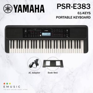 Yamaha PSR-E383 61-key Digital Piano with AC Adaptor & Book Rest (PSR-E383 / PSR E383)