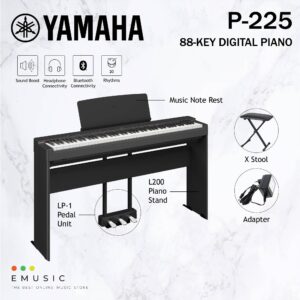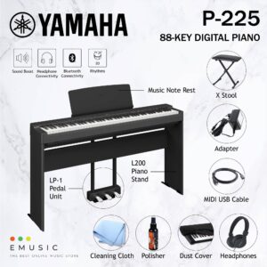 Yamaha P-225 88-key Digital Piano with Piano Stand, X Stool and Headphones – Black (P225 / P 225)