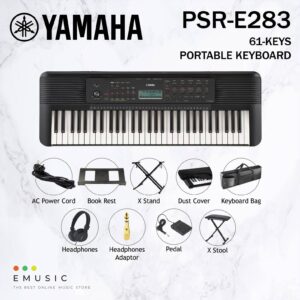 Yamaha PSR-E283 61-key Digital Piano with AC Power Cord, Book Rest & Headphones (PSR-E283 / PSR E283)