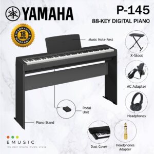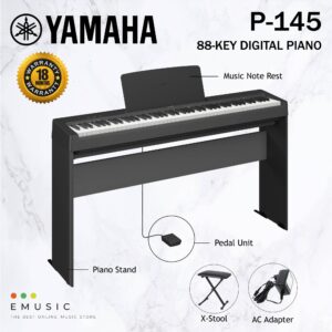 Yamaha P-145 88-key Digital Piano with Piano Stand, Pedal, and X-Stool (P145 / P 145)
