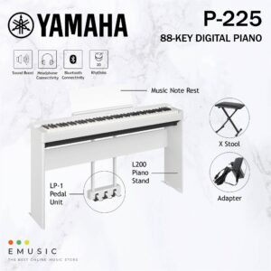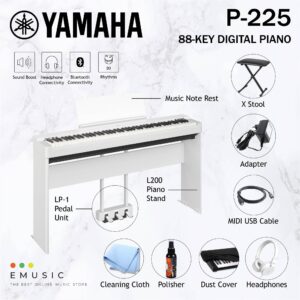 Yamaha P-225 88-key Digital Piano with Piano Stand, X Stool and Headphones – White (P225 / P 225)