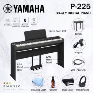 Yamaha P-225 88-key Digital Piano with Piano Stand, Bench and Headphones – Black (P225 / P 225)