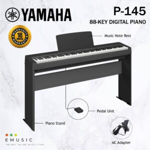 Yamaha P-145 88-key Digital Piano with Piano Stand, Pedal, and Dust Cover (P145 / P 145)